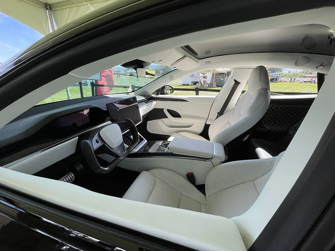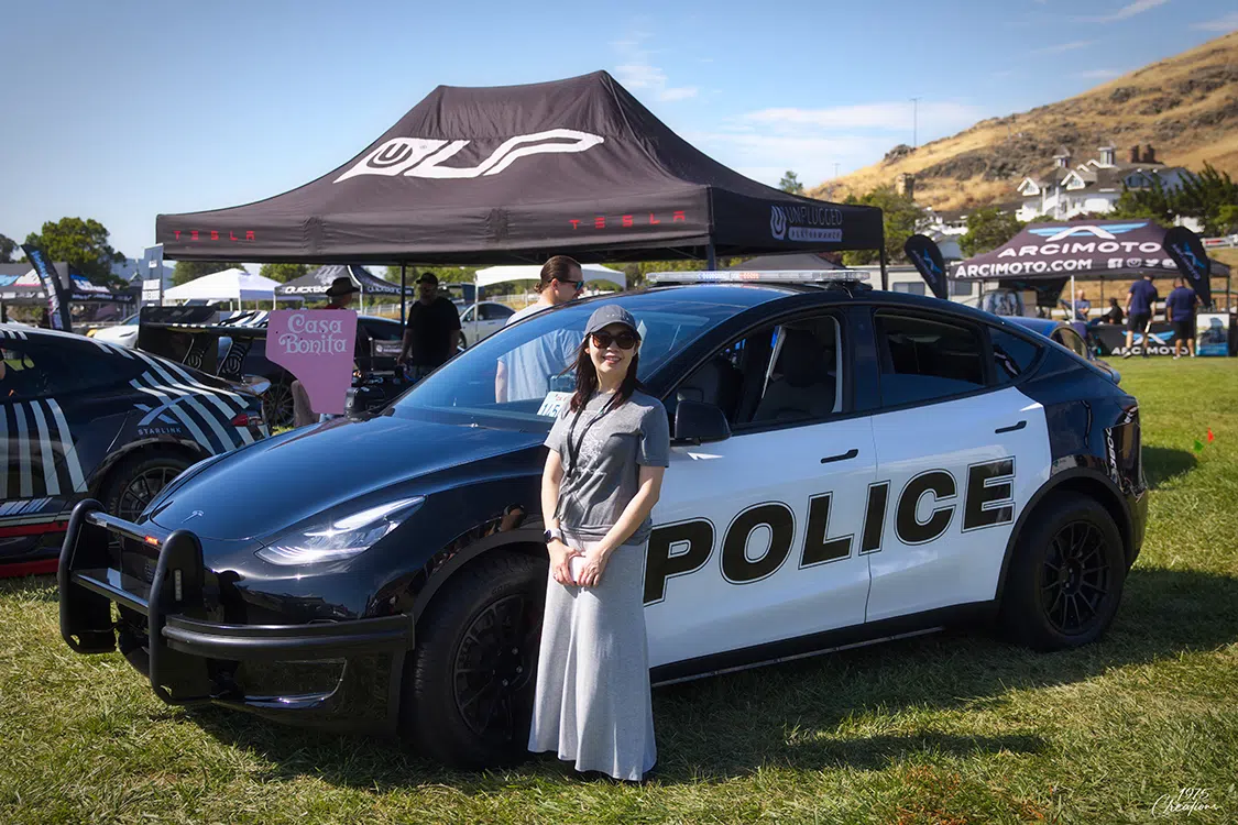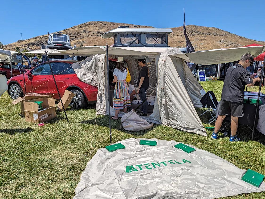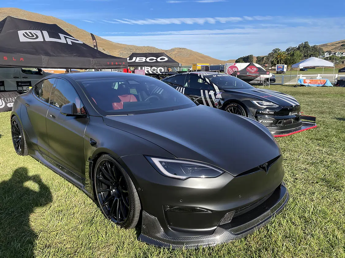 The modified Tesla show was the main event, and it was wilder than ever with incredible custom Teslas, mainly Model 3 and Ys. There were several recent Model Ss and Xs, including Plaid and the awesome Dark Helmet from Unplugged Performance we reviewed in EVBG Volume 2. There were even some “classic” Tesla roadsters. No Cybertruck or Semi yet, but next year’s event should have them aplenty. A few other exciting EVs, particularly Rivians and Lucids, were present to highlight other EV manufacturers. Aftermarket products were available in an incredible variety from vendors with very practical accessories, from rim guards to a Cybertruck drop-in camper-pod. The Aptera Gamma vehicle made a rare appearance, too! It would be challenging to visit the show and not return with goodies for your ride!