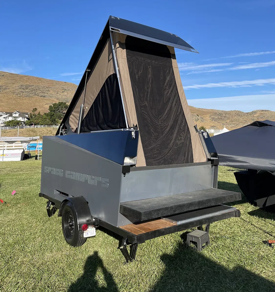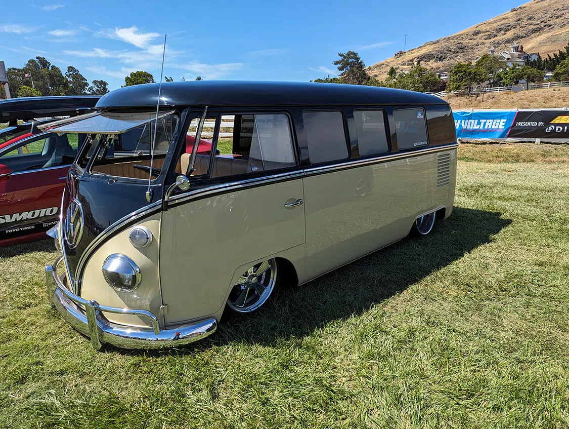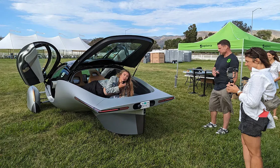 The modified Tesla show was the main event, and it was wilder than ever with incredible custom Teslas, mainly Model 3 and Ys. There were several recent Model Ss and Xs, including Plaid and the awesome Dark Helmet from Unplugged Performance we reviewed in EVBG Volume 2. There were even some “classic” Tesla roadsters. No Cybertruck or Semi yet, but next year’s event should have them aplenty. A few other exciting EVs, particularly Rivians and Lucids, were present to highlight other EV manufacturers. Aftermarket products were available in an incredible variety from vendors with very practical accessories, from rim guards to a Cybertruck drop-in camper-pod. The Aptera Gamma vehicle made a rare appearance, too! It would be challenging to visit the show and not return with goodies for your ride!