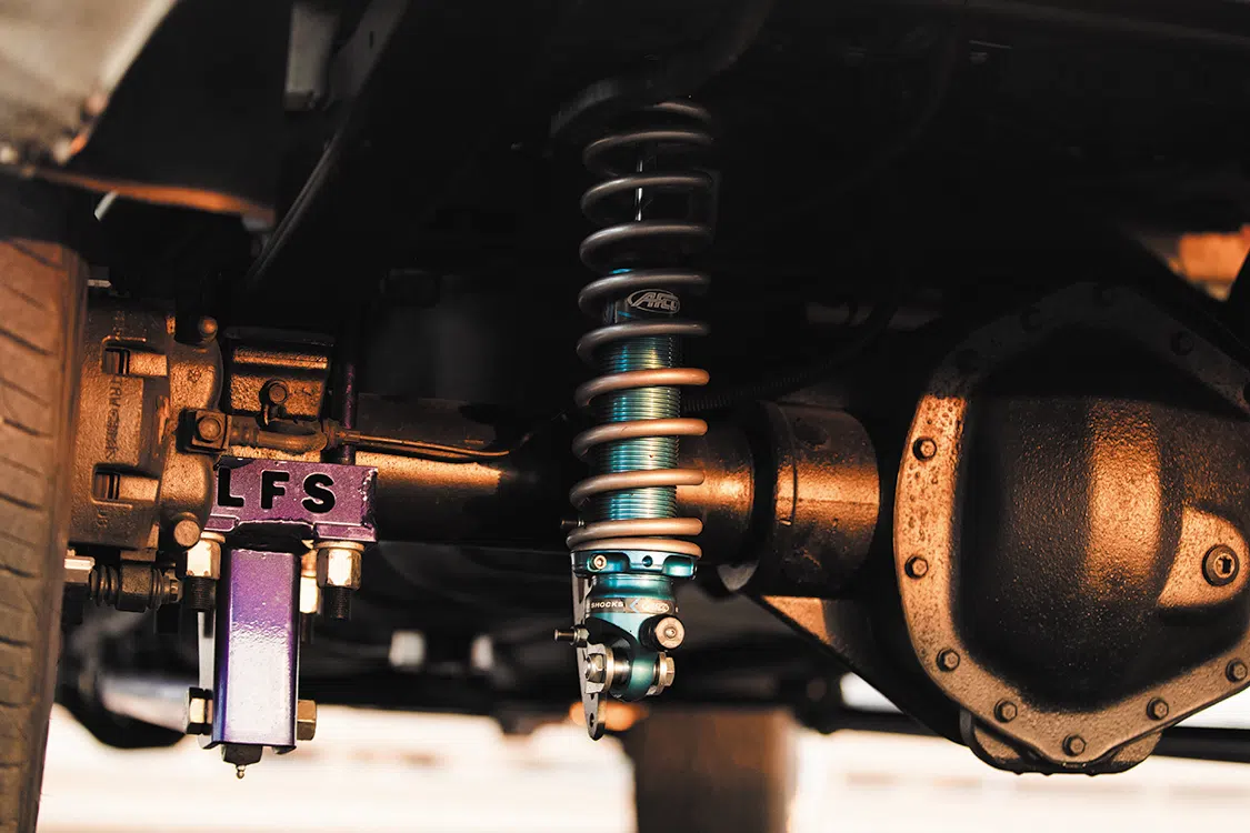 Now you can’t build a highly competitive diesel without also upgrading the chassis and suspension system, so Daniel entrusted Keaton Samples of Samples Performance Fabrication to upgrade the truck’s undercarriage. In addition to modifications to the rear section of the frame, Keaton equipped the Ram with Firepunk lowering coils and Bilstein 5125 shocks in the front, while modifying the truck’s factory leaf springs in the rear to make use of just two leafs in each pack, and adding Afco coilovers with 200-pound springs to the mix.