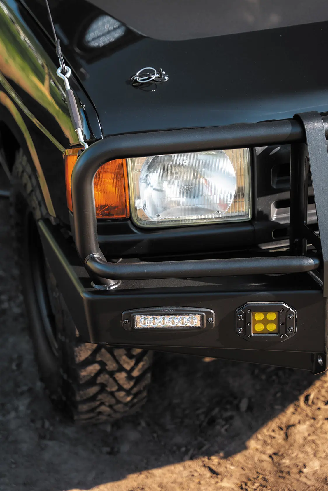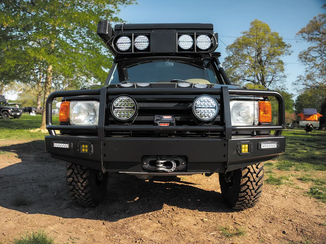 “Both front and rear of the Rover are outfitted with ARB bumpers for looks and body protection, while the camel cut wheelwells make for expertly fit wheels and tires.”