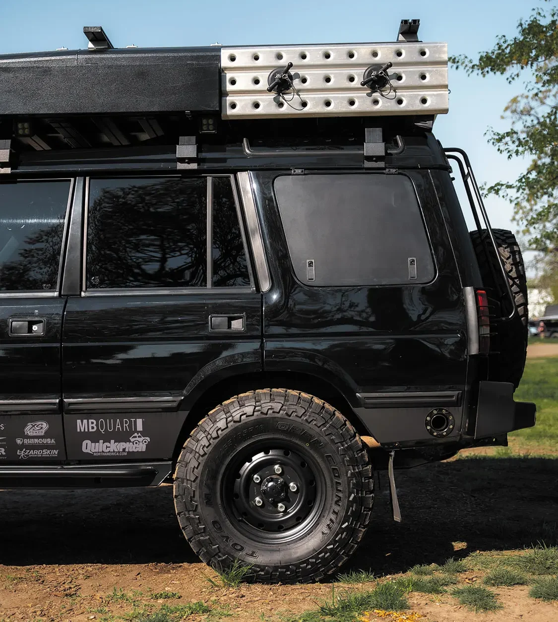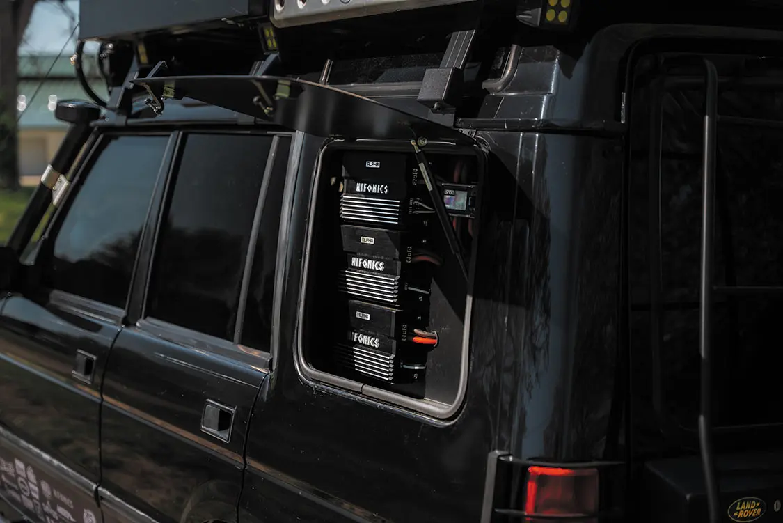 Custom touches like the exhaust exit incorporated into the driver-side rear quarter panel, as well as the custom gullwing quarter window compartments fabricated by Ryno Built expertly conceal the on-board light management, REDARC Manager30 battery management, and stereo system components to push this Discovery to the top of our favorites list.