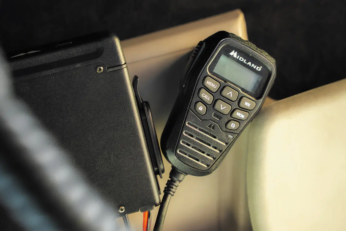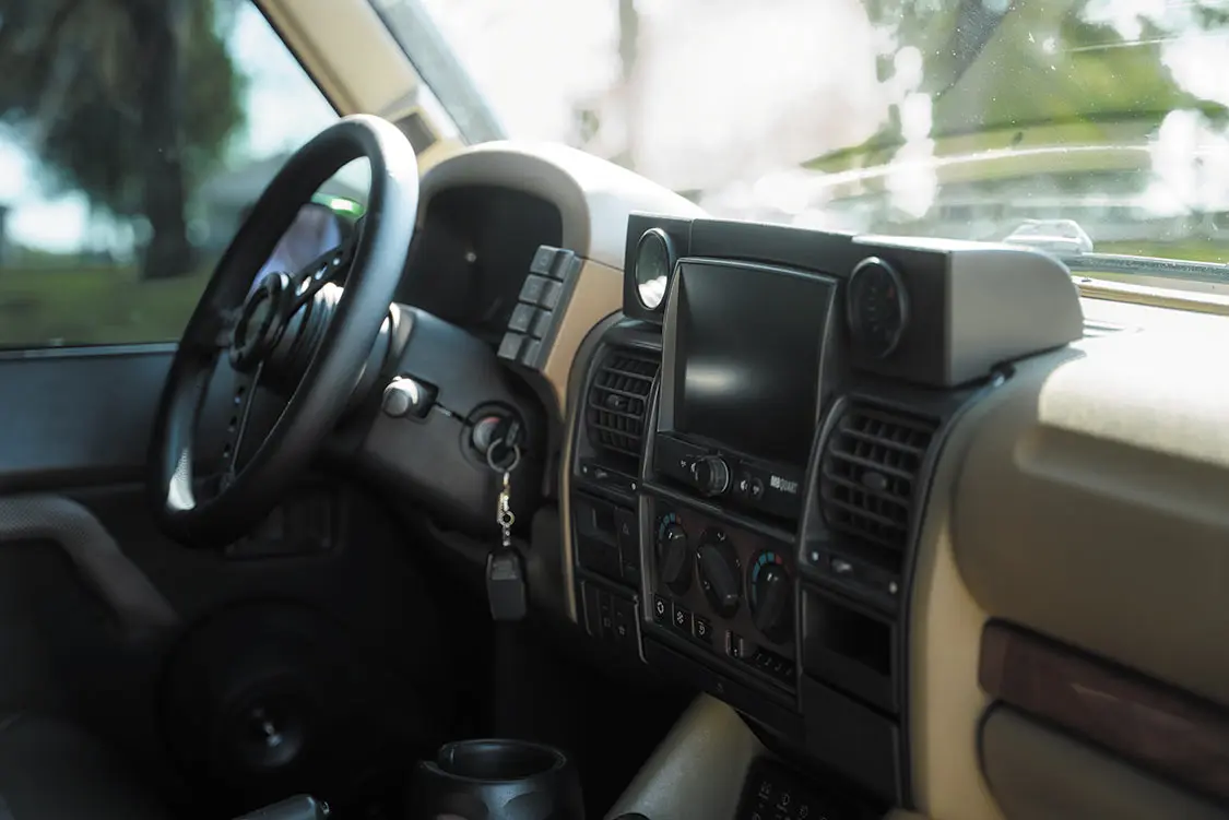 Inside, the Discovery features stock front seats that were reupholstered in black suede and vinyl by Jeffery Trujillo. In front of the driver, a MOMO steering wheel has been added, as well as New Vintage USA secondary instrumentation, while the entire interior features surround sound thanks to a full MB Quart/Hifonics sound system with a 7-inch touchscreen head unit in the center of the dash. For better off-the-grid communication, a Midland MXT575 MicroMobile GMRS two-way radio was also added.