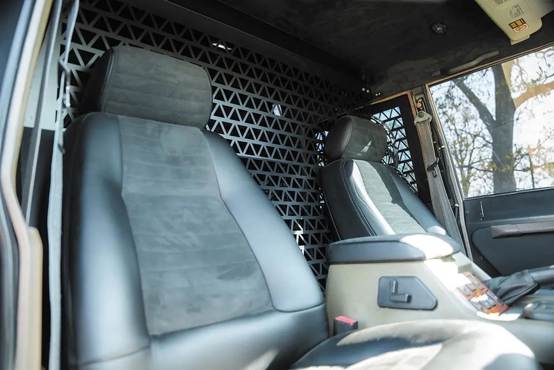 Going all-in, Ryno didn’t stop with the exterior of the Discovery either. He also equally outfitted the interior of the Rover for multi-day off-road adventures—ones that certainly include the dog as well!