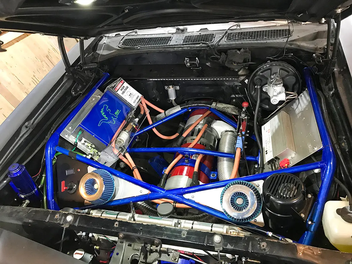 The heart of Baby is a Brushed DC Netgain Warp9 motor coupled to a TransWarp9 motor drive unit. These components, working in harmony, deliver a remarkable 700 kW/800 hp in “Boost” mode and an awe-inspiring torque exceeding 800 ft-lb. The transformation from a V-8 powerhouse to an electric marvel has been both exhilarating and humbling.
