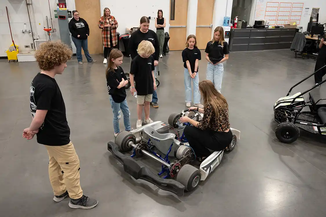 The EV Innovators Club provides students with a structured, hands-on introduction to EV technology. Through an engaging curriculum and hands-on projects, participants gain practical skills while fostering a passion for STEM careers. A key feature of the program is that students build and drive their own electric go-kart, making learning fun, interactive, and directly applicable to real-world EV technology.