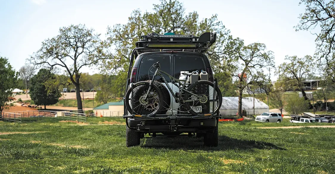 The build truly started out with lots of wiring, as well as custom metal and woodwork. All of the van’s modifications and many of its accessories, including rock sliders, swing out spare tire holder, roof rack, and ladder, were done by Lieberman himself though Rynobuilt.