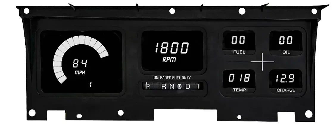 Dress up your 1980-’86 Ford F-Series truck with the latest LED Digital Replacement Gauge Panel by Intellitronix (Part #DP1011), available from Auto Metal Direct. This panel comes with direct-fit printed circuit boards; custom-fit smoked Plexiglass faceplate; universal temperature-, oil pressure-, and speedometer-sending units with sender and sensor for vehicles without electronic transmission or cruise control; and instructions for installation. Colors are white, red, blue, green, and teal, and they come with all required sending and sensor units.