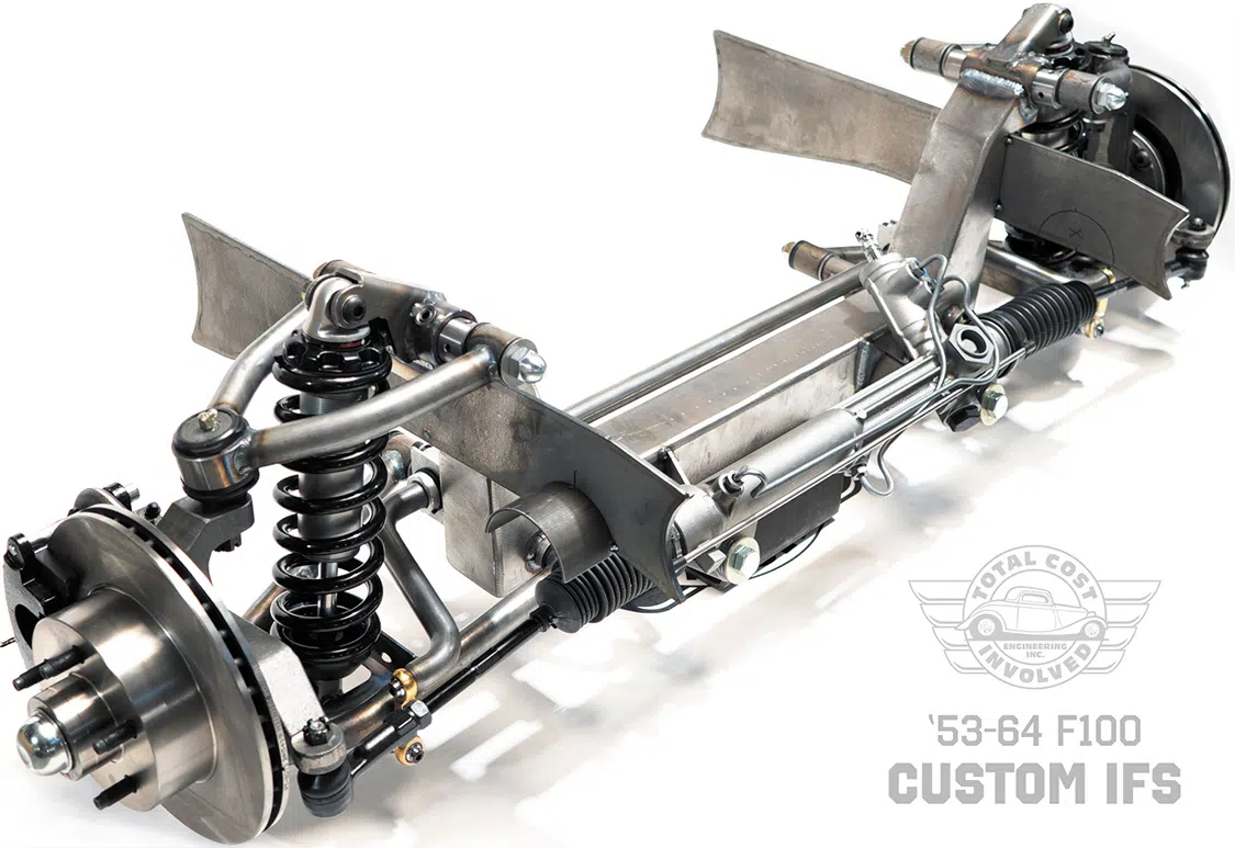 This American-made 1953-1964 Ford F-100 Custom IFS is engineered for easy installation, enhanced drivability, and a broader range of alignment adjustments. This frontend is based on Total Cost Involved’s custom-designed spindle with bolt-on steering arms and proprietary geometry to maximize comfort and performance. The offset stainless eccentric adjuster provides easy camber and caster adjustments. It’s available with dropped or stock height spindles to provide a ride height that matches your specific desires.