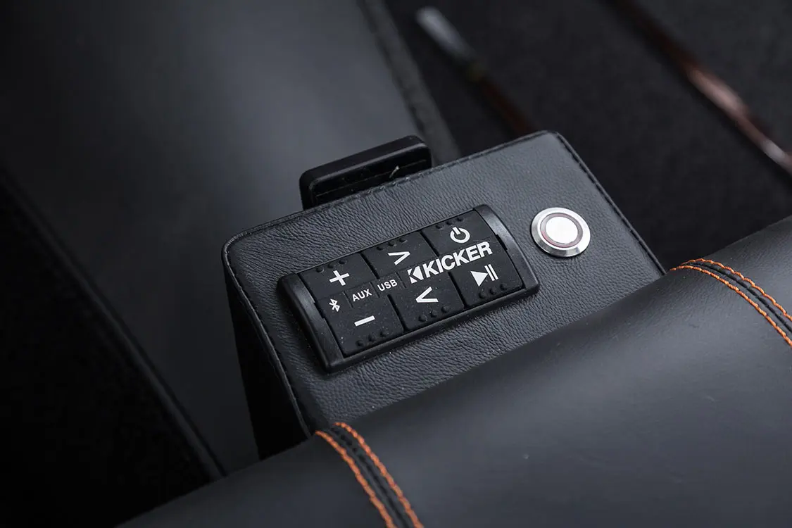 Ron Mangus of Yucaipa, California, worked his magic on the interior. He added Glide seats ensconced in luscious black and brown leather. All his design’s stitching matches the smooth body lines on the truck; in fact, the headliner matches the hood’s imprint!