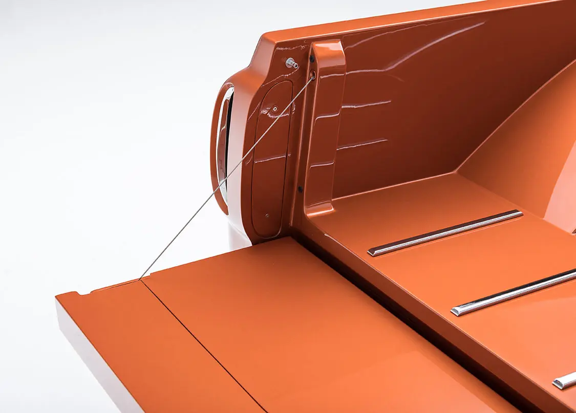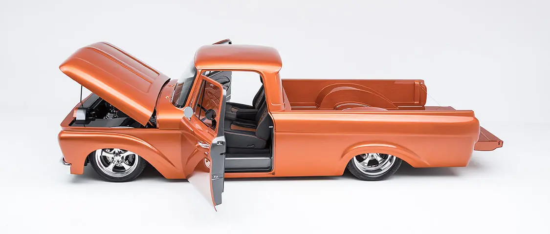 They also chose a custom Burnt Orange paint from PPG. But the lines on those wheelwells are downright sexy, right? Well, Betsy gets even more gorgeous inside the cab.
