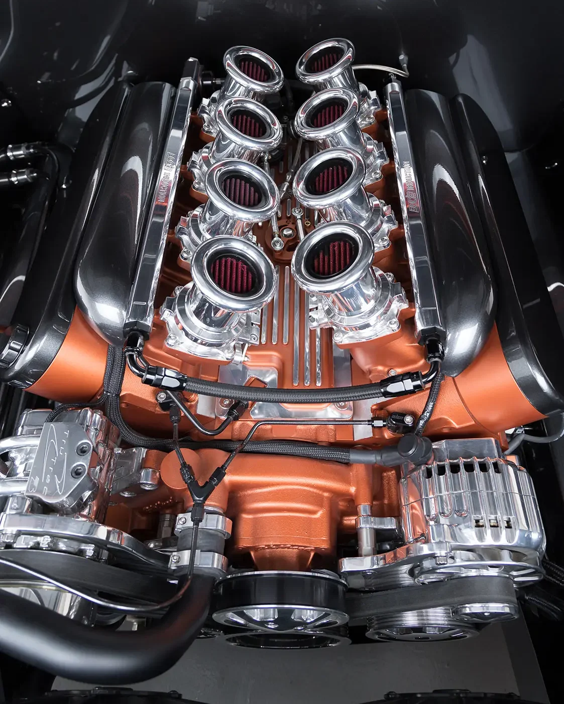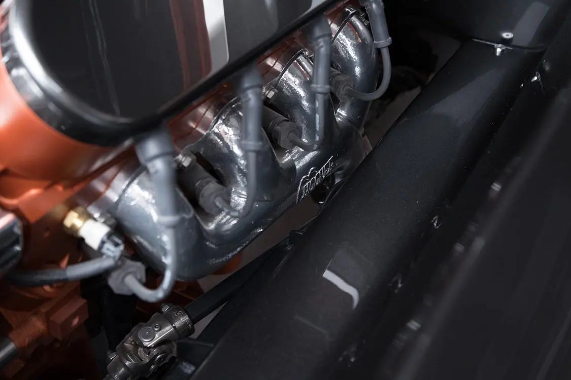 “It took a lot of parts for this engine swap,” Mark says. “Custom frame mounts, custom firewall, custom floor pans, custom inner fenders and radiator mount …”