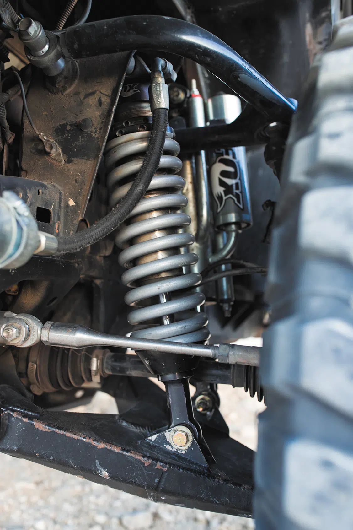 Both the front and the rear of the truck are further fitted with Eibach springs, as well as FOX 2.5-inch coilover shocks—the frontend featuring 2.5-inch FOX bypasses, and the rear featuring 3.0-inch bypasses. The truck also makes use of a 0.90-diameter RockJock Antirock sway bar kit with 18-inch arms, as well as WarFabInc skid plates to protect everything from the undercarriage up.