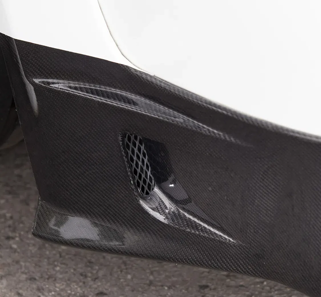 The car already boasted the Revosport low line kit, featuring a front splitter, side skirts, rear diffuser, and ducktail spoiler. To augment its appearance, Andrew added a full carbon-fiber wide arch kit, expertly painted to match the body color.