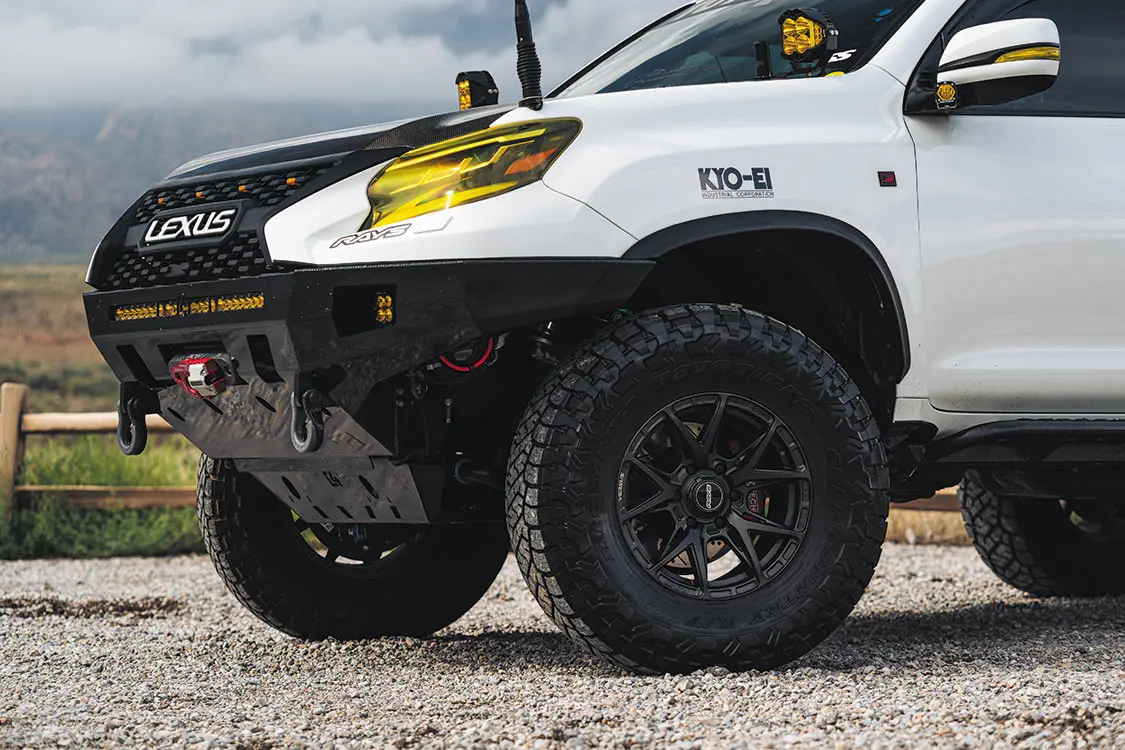 With all of these upgrades in play, J-Matt is able to take full advantage of some killer departure angles and gets plenty of travel front and rear, keeping him comfy behind the wheel and the GX’s undercarriage safe from damage. Of course, a full set of underbody skid plates from C4 Fabrication, including his front bumper, diff skid, and rock sliders, plus a front grille from Garage Alpha Off-Road, helps with that, too.
