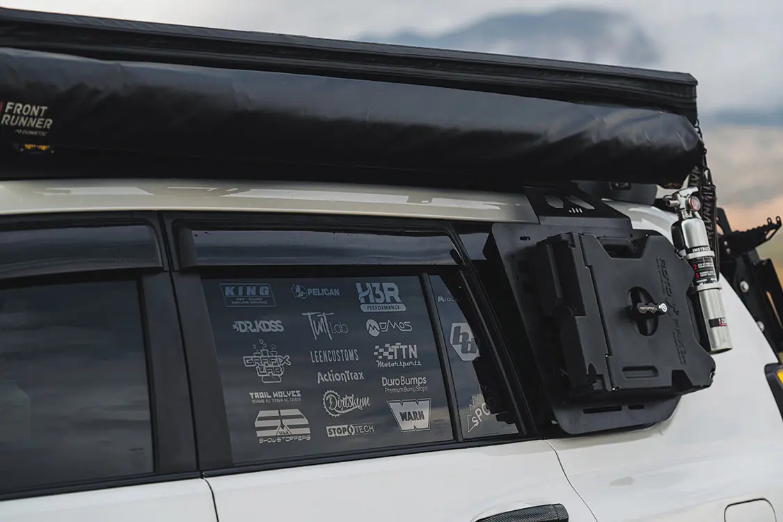 On the roof, it all starts with a Front Runner Outfitters Slimline II roof rack. Its main companion is an Inspired Overland Lightweight RTT, but it also holds a series of Front Runner gear and so much more. An axe, table, roof handles, and Quick Release Awning all from Front Runner are just the beginning of rooftop accessories.