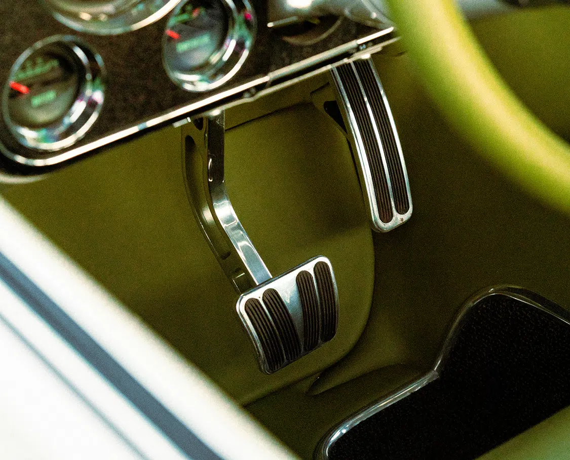 Todd gave the drivetrain some love too by including a TCI 4L80 transmission with a shift kit upgrade and a Lokar “Axi Shift” shifter to ensure smooth, strong shifts. The custom two-piece driveshaft with a billet center hanger bearing connects to a 9-inch Ford rear axle with 3.25 ratios and a limited-slip differential. Stopping power comes from Wilwood six-piston 13-inch brakes up front and 12-inch discs at the rear, all controlled by a Wilwood master cylinder with hydroboost.