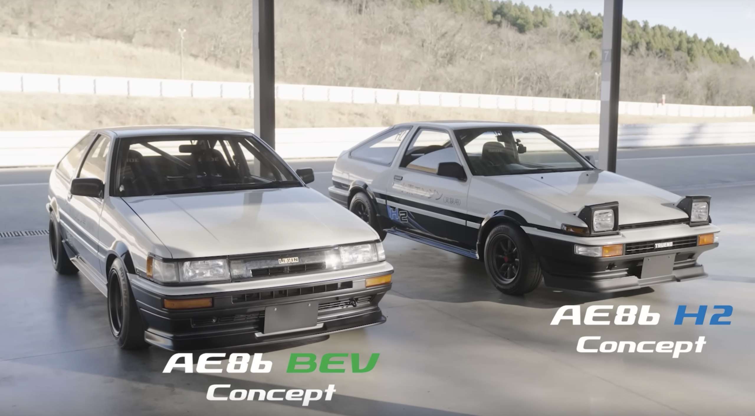 To prove his point, Toyota unveiled two examples based on its wedgie AE86 hot hatches of the 1970s. One features an electric conversion, while the other opts for hydrogen. Toyoda says he knows developing his conversion concept is complicated.  “There’s a competition to announce BEVs as quickly as possible now because of regulation,” Toyoda said. But he thinks, and the industry seems to be showing, that car buyers want to make a choice of several alternatives. And he says that Toyota’s targets are different of other automakers.