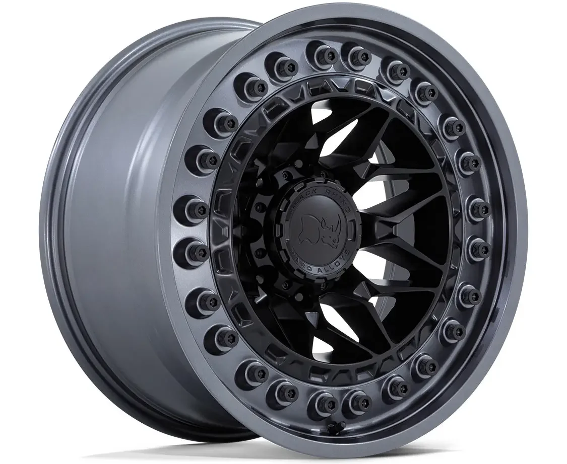 The Black Rhino Alpha wheel is an off-road evolution of their most popular street truck wheels. Featuring a motorsports-inspired mesh design, the Alpha is optimized to accommodate a broad range of fitments, including larger 8-lug truck hubs. Offered in 17×9, 18×9, and 20×10 sizes for 5-lug, 6-lug and 8-lug trucks and three unique standard finishes. Accentuate the hybrid mil-spec and motorsport design with your choice of Matte Black with Gunmetal Lip, Midnight Blue and Matte Black with Sand Lip finishes. Wheel load rating ranges between 2,500 lbs. and 3,700 lbs. per wheel to stand up against the harshest terrains on heavy-duty full-size trucks.