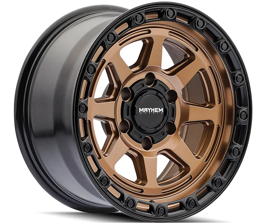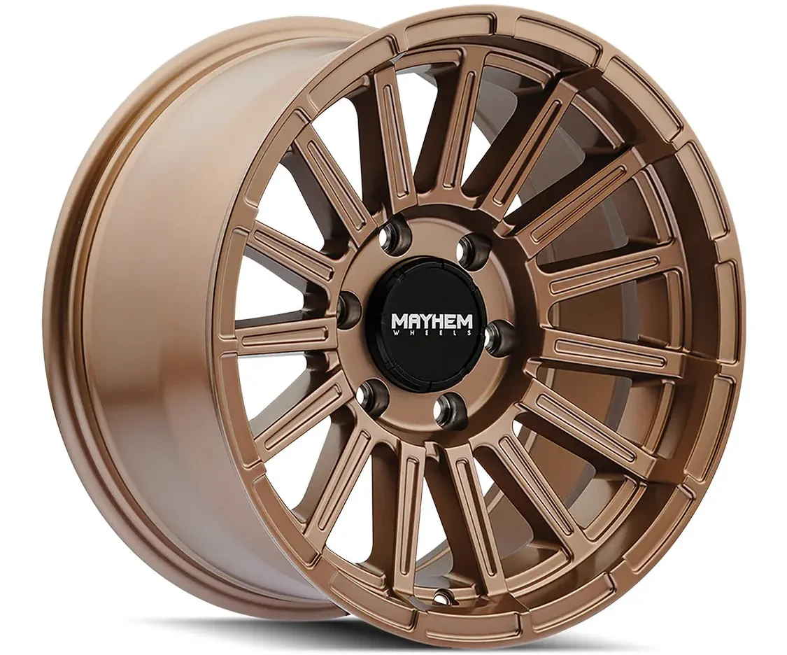 Mayhem Wheels Ridgeline is a sleek concave eight-spoke design with built-in drain holes for unmatched performance. Made for enthusiasts who demand nothing but the best, this wheel is sure to turn heads and leave competitors in the dust. Get ready to dominate the trails with confidence with the Ridgeline. Available in Satin Black and Gloss Bronze w/ Black Lip finish in a 17×8.5 diameter.