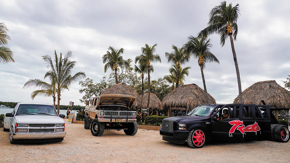 The event was made possible by the efforts of Solo and a fantastic group of sponsors, including Boostane, Solos MFG, CP Addict, DOJAMAT, FLO Air Ride, Air Lift Performance, Holley, Outcast Autoworks, PRD Design, Fat Fender Garage, Donkmaster TV, Needems Garage, Jackd Up Trucks, Ford Era, I95 Motorsports, Red’s Miami, Papi’s Garage, LGND Motorsports, and Street Trucks Magazine.