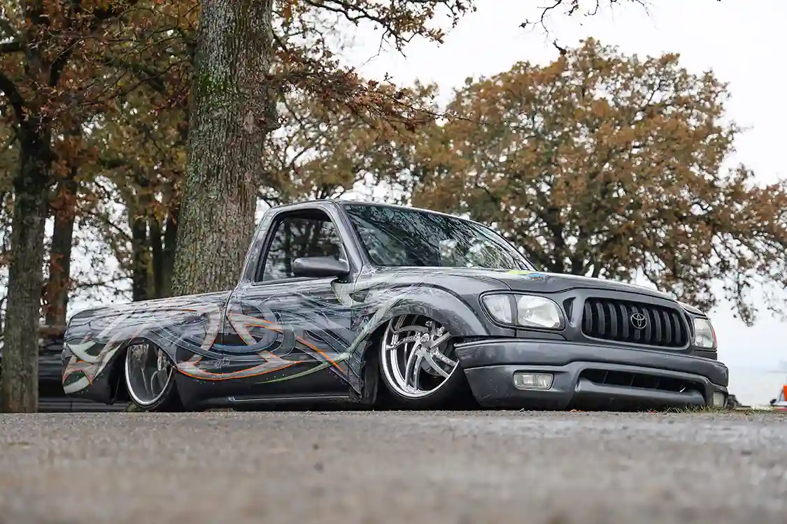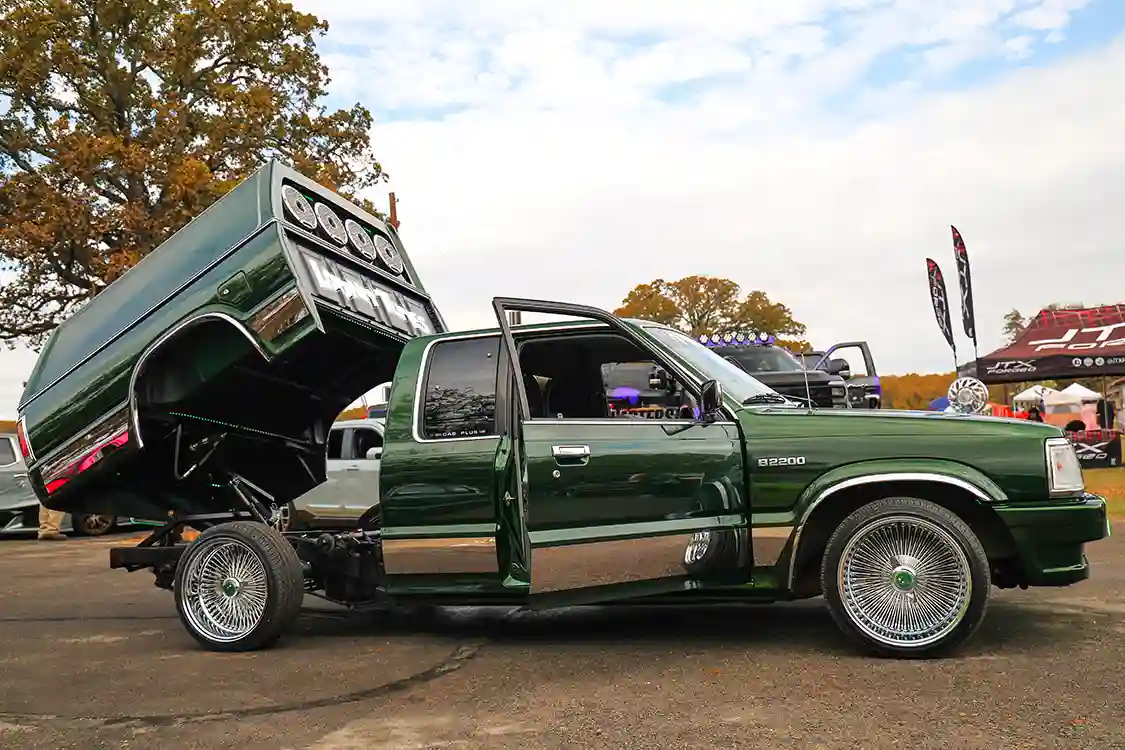 The 2024 event didn’t disappoint, with some of the cleanest builds in the country making the trek. From slammed mini-trucks and body-dropped full-sizes to towering lifted rigs with custom wheels, there was something for every kind of truck enthusiast. Vendors packed the park, offering everything from custom parts and apparel to one-of-a-kind artwork and accessories. JTX Forged Wheels had a killer display of lifted rigs, while KIK Clothing set up shop with their custom merch hauler parked right in the action.
