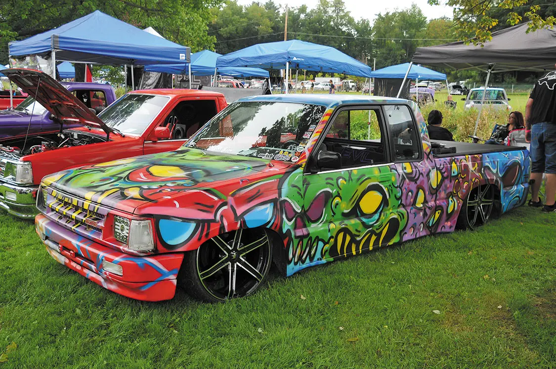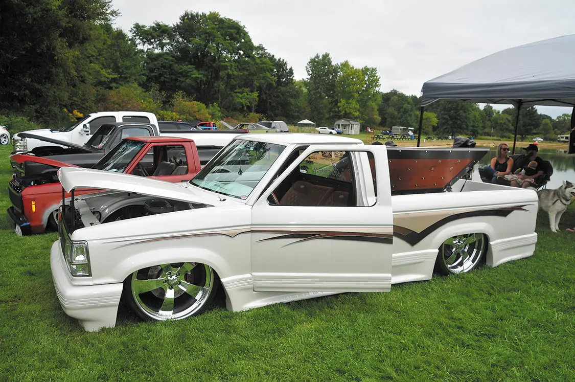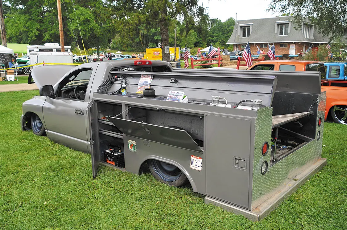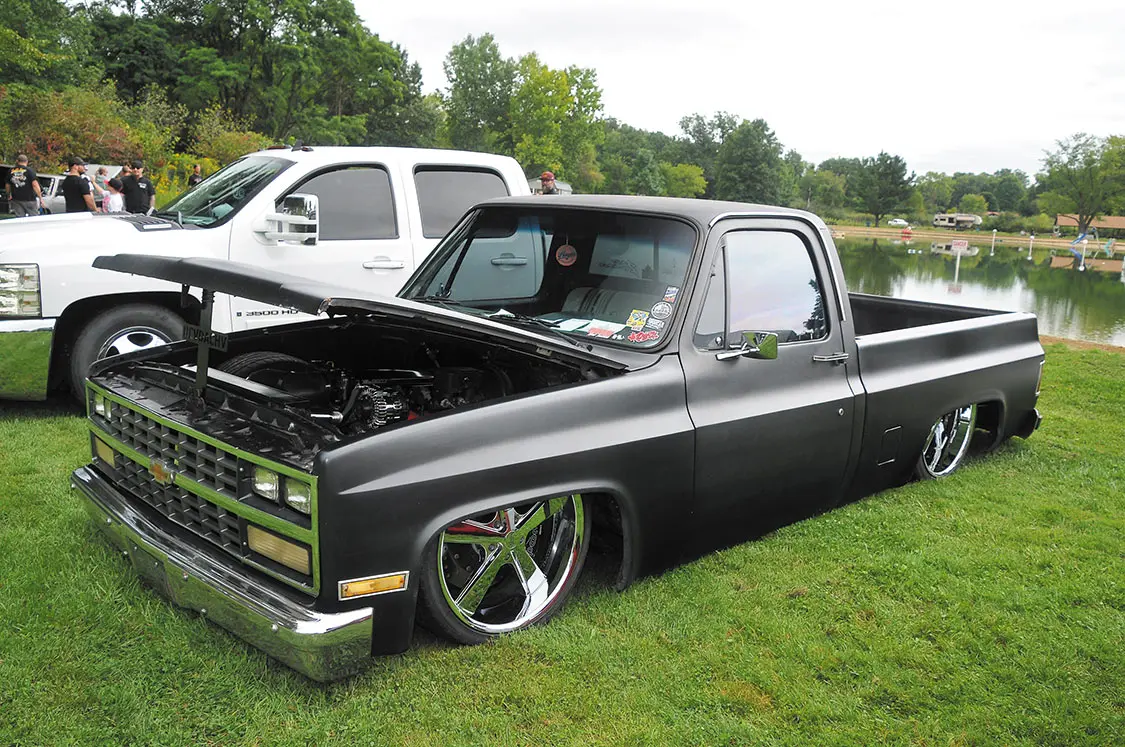 Plenty of vendors were there for everybody’s needs, too—like Buffalo Bills Jerky that had every type of meat treat you could think of and OG Street Eatz that was supplying everyone with high-quality cheesesteaks. Bobby’s Hot Wheels was selling die-cast cars and trucks of just about every model for the kids and parents. Illusive Design & Fabrication set up a booth to answer questions about how to design and build the perfect truck. And, of course, Outlaw Pinstriping was laying down stripes on trucks all weekend long. At the afterparty, held at the host hotel Comfort Suites in Hartville, Ohio, everyone had a blast until the late hours of the night.