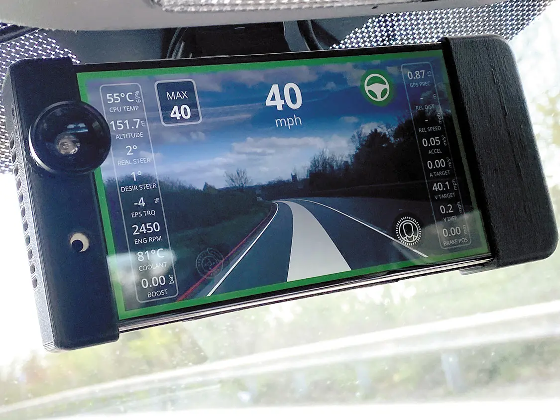 My family lives in Scotland, eight hours from me, and I drive up there often. I noticed 90% of the driving is dull and boring driving on motorways that a computer could efficiently perform. So, I looked at what systems were available. I concluded I would either have to get the highest-spec BMW, Mercedes Benz with lane keeping and adaptive cruise control, or buy a Tesla with Autopilot or Full Self Driving. From then on, my new goal was to get autonomous driving without purchasing a brand-new EV. There are five levels of autonomous driving. My Smart car is a Level 2 system that allows autonomous control in certain situations but relies on a human fallback at any time. When the system is operating, it uses the smartphone’s front-facing camera to monitor the driver’s face and ensure they are attentive. This means you don’t have to keep nudging the wheel like in most other EVs, which makes the experience far more relaxing.