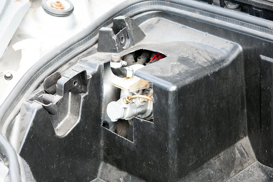 Another implementation was fitting the Tesla iBooster. Since it was designed by Bosch, an OEM for Mercedes, and the Smart was designed by Mercedes, the Tesla iBooster bolted straight into the Smart—the firewall bolt pattern and brake pedal interface were a direct fit! It just required the frunk liner to be trimmed out and a smaller brake fluid reservoir fitted. I also swapped out the master cylinder for one from a VW e-Golf to match the Smart’s smaller brake calipers compared to the 4-piston ones in the Tesla.
