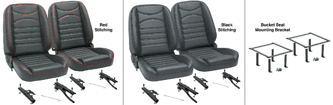 From LMC Truck comes these fully assembled bench seats. Seat slider tracks and seat reclining mechanism are included. The seats are universal and require mounting brackets for installation. Mounting brackets are sold separately. The all steel, TIG-welded frame is electrostatically coated for strength and durability. Premium-grade vinyl and stitching will stand up to years of wear and tear. Ergonomically shaped cushions are made with high-density, injection-molded foam to ensure comfort with the proper support.