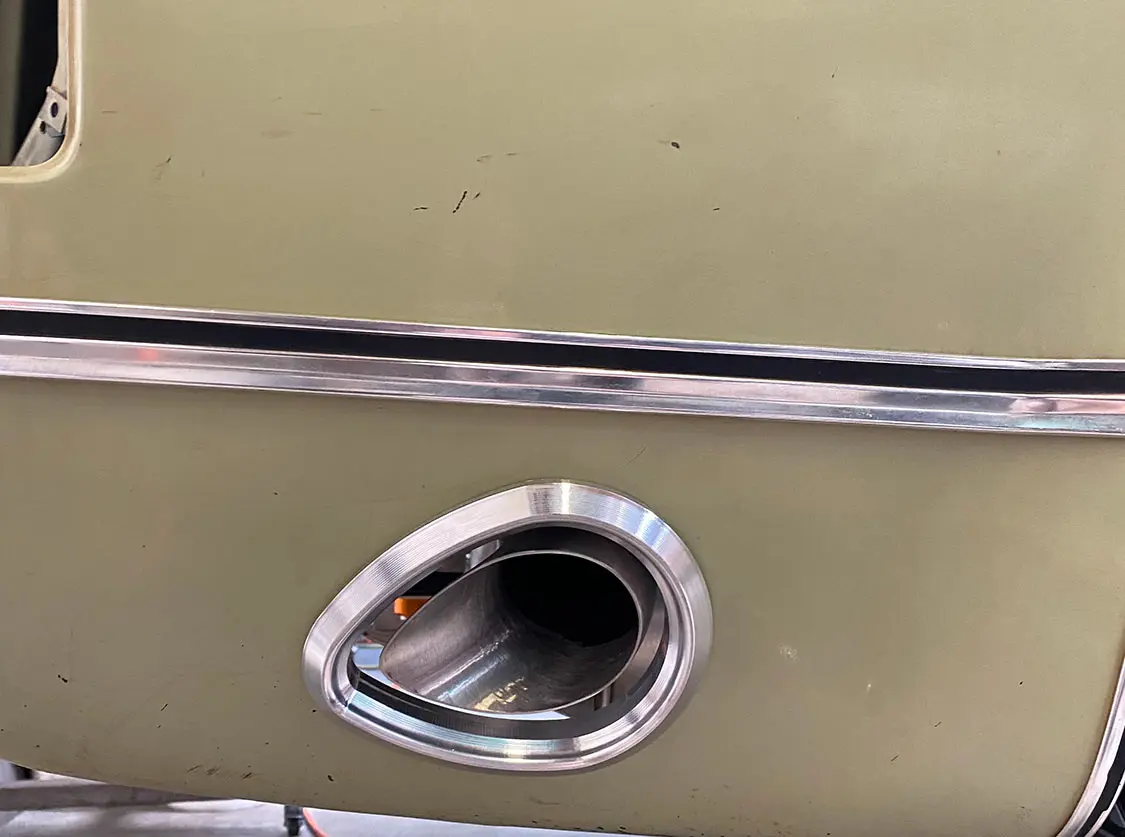 Finally, Rad Fab introduces these 6061 billet tear drop exhaust bezels. They feature blind-mount 28 quarter-inch holes on the backside.