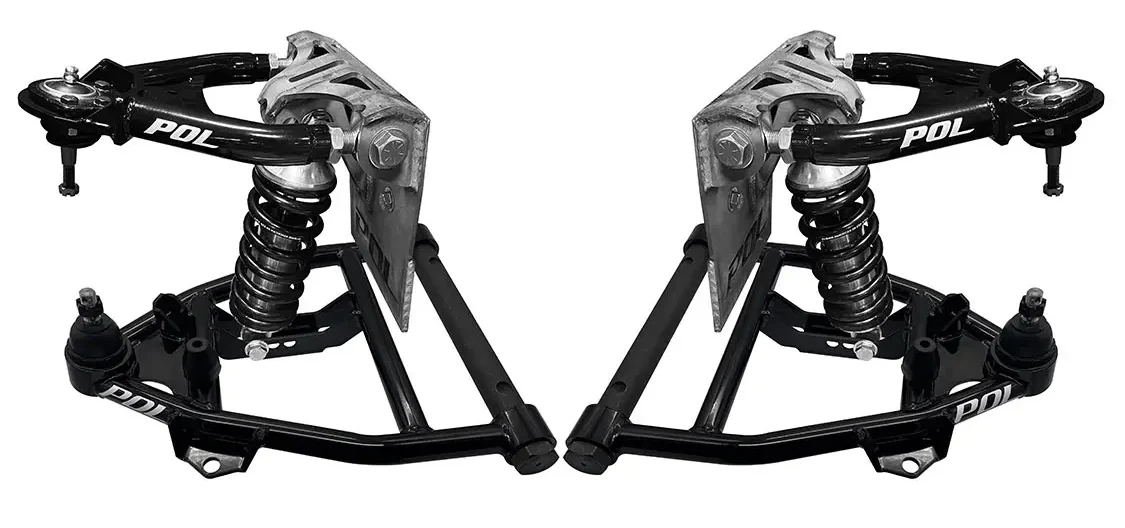 Taking it to the next level! The ALL NEW Hi-Performance coil over suspension kit for the 1963-87 Chevy C10 and GMC C15 truck is far superior in handling and performance. POL’s “new” design tubular upper control arms incorporate heim joint adjustability which vastly improves front end geometry. The new lower tubular arms include 3 lower shock positions to tailor your suspension for all driving styles. Frame plate offers 2 upper shock positions as well to dial in your suspension. All new Aldan Phantom Series single or double adjustable coil-overs deliver superior handling and ride quality for a drastic improvement over stock suspension. Aldan’s high tensile coil springs are designed as a direct fit and true stand-alone coil over suspension. Ride height adjustable shock saddle allow adjustment up to 2.0” drop. Entire system is “Bolt On” or you can choose to also weld the frame plates in place. Requires Rack & Pinion Steering, Not Compatible with gear box. Made in the USA!
