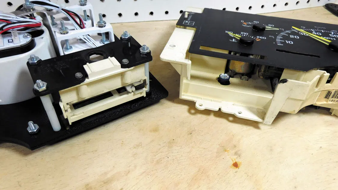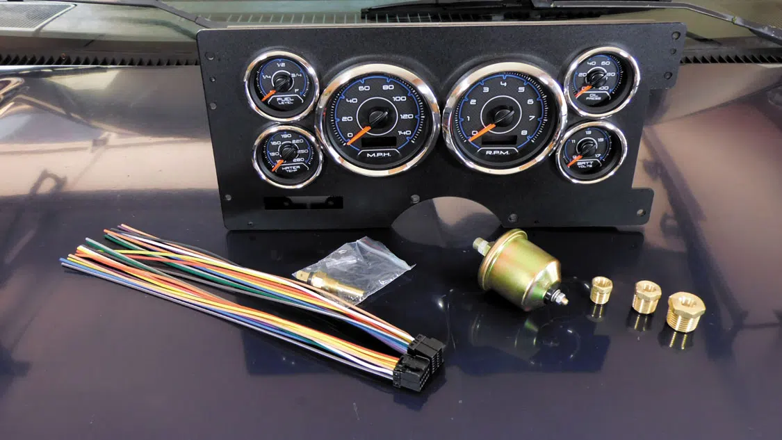 We are all about cool gauges, so we had to decide what series of gauge would help define our interior. The original gauges looked dated, and we needed to make sure our LS engine was properly monitored. New Vintage CFR Series blue gauges were chosen, and we wanted to share our installation process with you. This entire installation was done in our garage without any special tools.