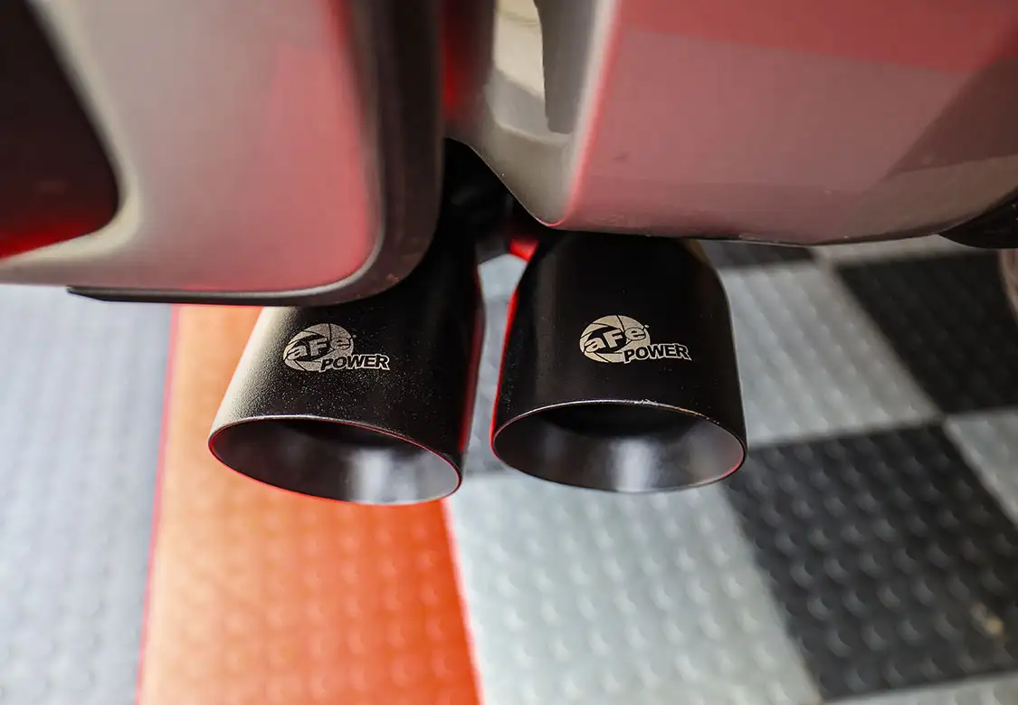 To expel the gasses out of the engine, we picked up another AFE Power part—the brand new DPF exhaust it just released for the new LZO engine (Part #49-34145-B with a $880 retail). This new Rebel XD 3-inch exhaust not only lets the exhaust gasses flow smoothly out of the truck, but it does so with dual black tips that finish off the system nicely.