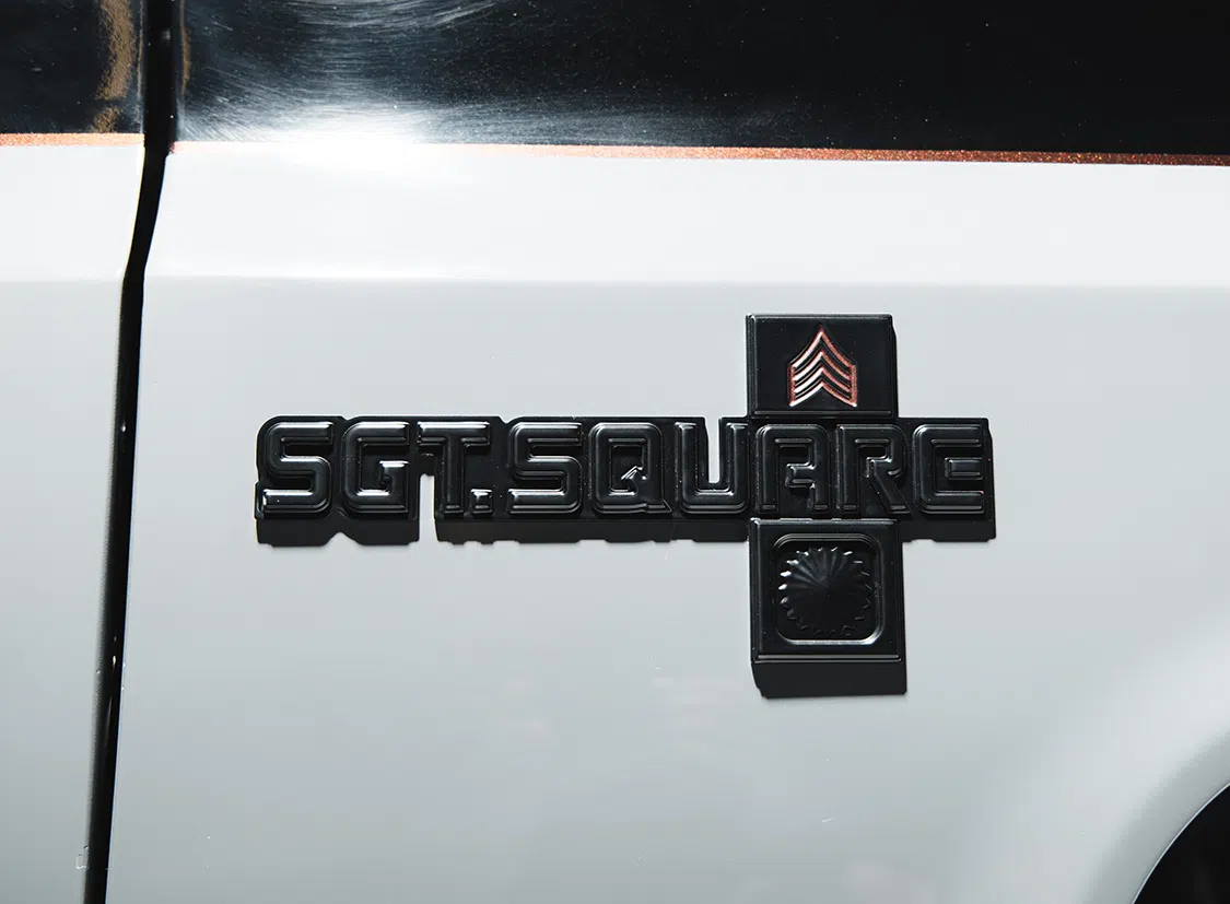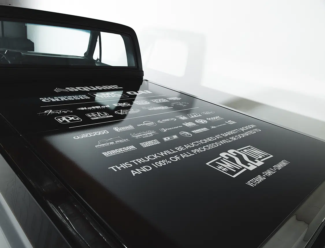 Sergeant Square made its grand debut at SEMA Show 2023 in Las Vegas and was displayed in the Motortopia booth in Hot Rod Alley. The truck will be auctioned at Barrett-Jackson, with all proceeds going to Mission 22.