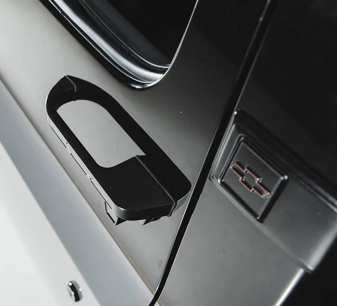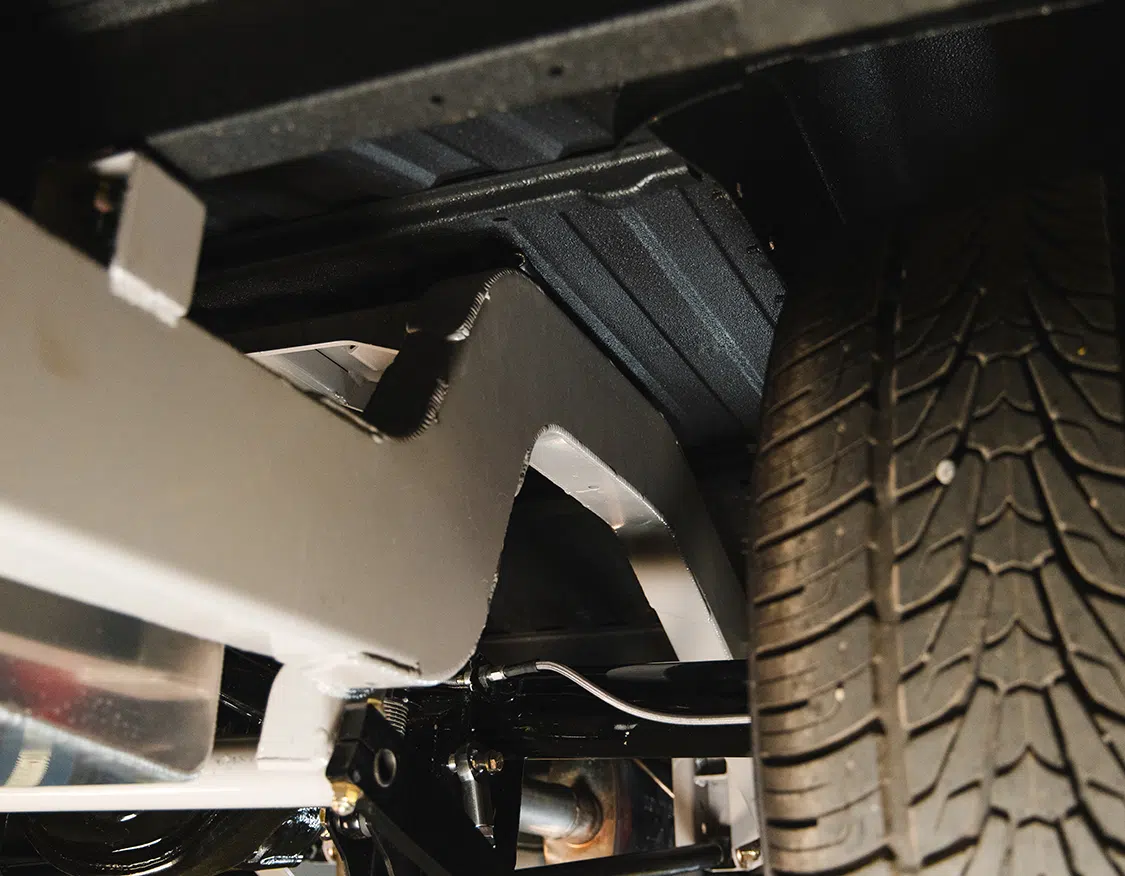 The customization journey began with Salvage to Savage, which assembled and welded a custom bed floor, followed by a unique bumper mount fabrication to integrate stock Squarebody bumpers onto the custom chassis. Frenching in the front and rear bumpers provided a sleek, modern look. The fuel system, enhanced with Hot Rod Fuel Hose components, ensures reliable performance, while the Boyd’s fuel cell mount adds a touch of elegance.