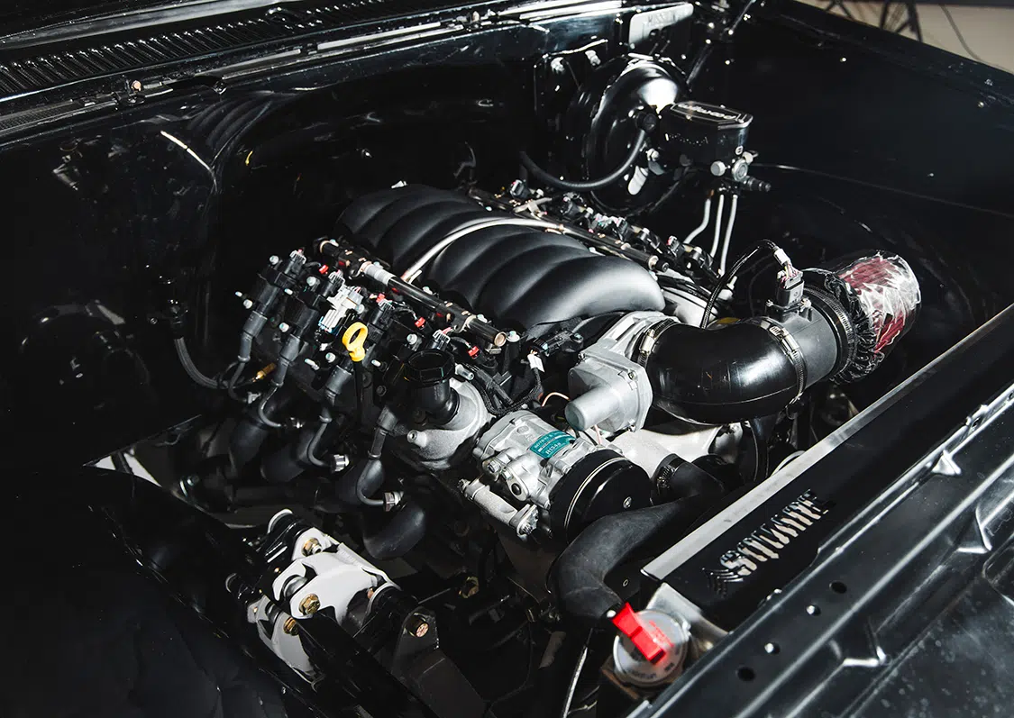 Vintage Air’s Gen 5 climate-control system, with its Super Magnum Evaporator, was installed to ensure optimal comfort. This fully electronic system offers superior cooling capacity and increased durability, making it an essential upgrade for the Sergeant Square.