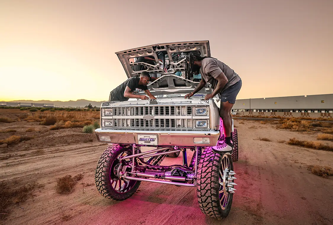 Knowing he had to do something over-the-top to stand out at SEMA, Mario opted to tear into his 1982 Chevy K30. For most people, years of work go into building a vehicle for SEMA, but unfortunately Mario only had three months to decide on the look he was after, get the parts ordered, and get the truck put together. Years of training and practice in football taught him how to focus on the end result and make things happen. He got together with his shop manager, Will Davis, and set a game plan into motion.