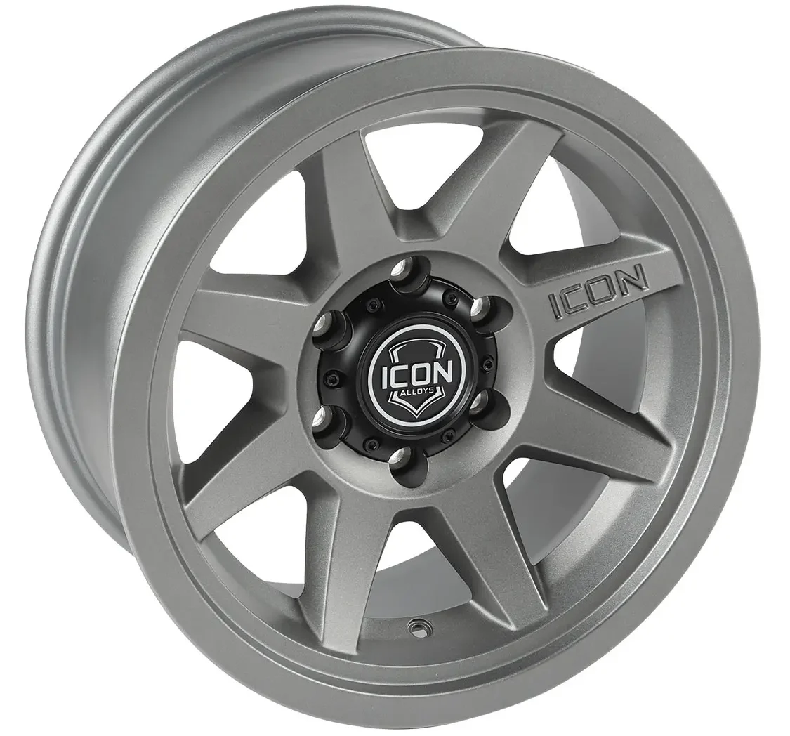 Featuring Icon’s classic Rebound style, the Rebound SLX wheel offers a smooth lip for those who wish to opt out of faux bead-lock styling. These aluminum wheels boast a load rating of 3,200 pounds and are available for most 5- and 6-lug applications in both charcoal and satin black finishes.