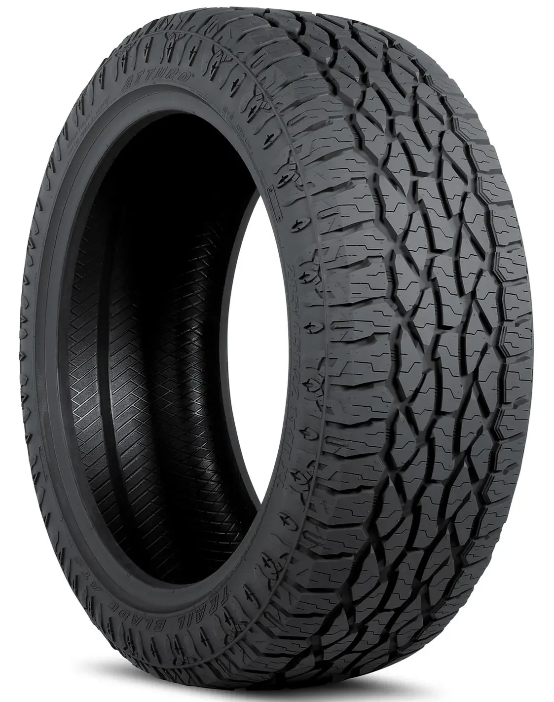This all-terrain tire from Atturo features an aggressive sidewall molded after the Quartermaster QSE-5 knife, which gives it one of the most unique and recognizable styles on the market. Large tread blocks, deep sipes, long center rib, and wide channels provide a stylishly rugged functional tire that is ready for action on the paved highway as well as on off-road trails.