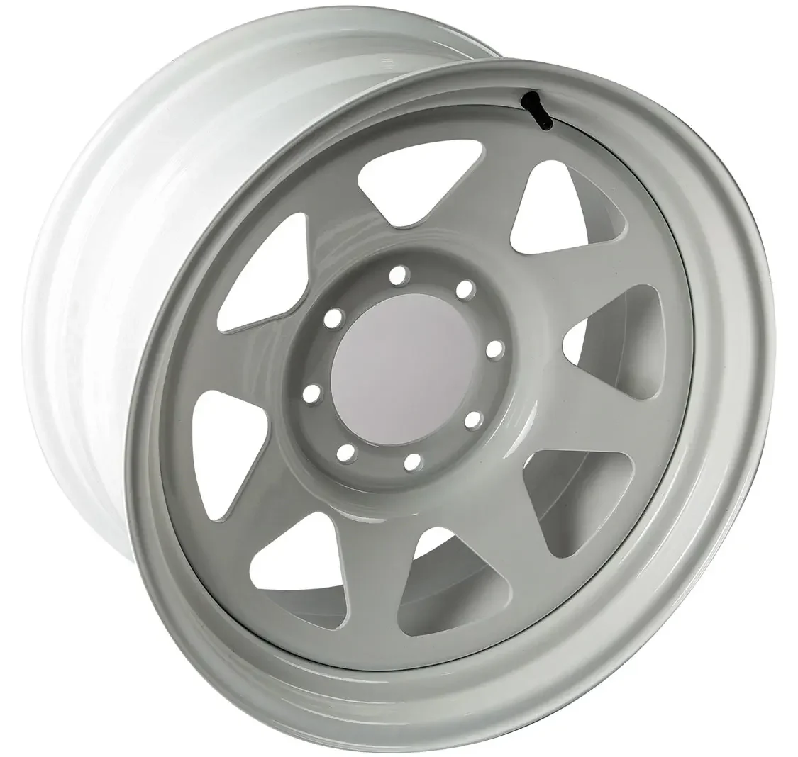 This 20-inch, 8-spoke all-steel wheel option is available in an 8×6.5 bolt pattern in sizes 20×8, 20×9, 20×10, 20×11, 20×12, and 20×14. Finishes available are gloss white (shown), gloss black, matte black, or raw—perfect for any classic-truck project.