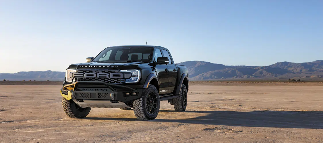 Priced from $24,950—exclusive of the base Ford Ranger Raptor—the VelociRaptor 500 package features enhanced air induction, a high-capacity intercooler with a blow-off valve, and an upgraded engine management system. Hennessey will also transform the exterior with custom VelociRaptor bumpers, LED off-road lights, unique Hennessey 18-inch 10-spoke alloy wheels, 35-inch off-road tires, and “VelociRaptor 500” badging. The interior features Hennessey’s embroidered head restraints, all-weather floor mats, and a unique build number plaque.