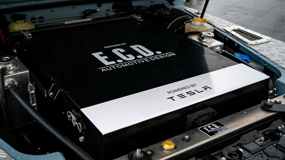 Torque is an off-road vehicle’s best friend, so it made perfect sense when Land Rover specialists E.C.D. Automotive Design out of Kissimmee, Florida, debuted one of its latest builds, Project Britton. The six-seater sports tons of custom touches, with the major one being the 450-horsepower Tesla motor swap. Although only a single motor was used (powered by a 100kWh battery pack), it still retains its four-wheel-drive configuration. Range is stated to be about 220 miles under normal street driving conditions, and 60mph can be achieved in just 5 seconds when in a hurry.